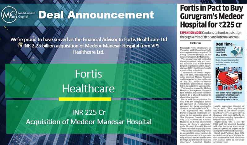 We are presently advising a publicly listed hospital group on its acquisition of synergistic assets across India. The total acquisition value is c. USD 300 million